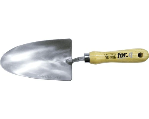 Met het for_q tuinschepje van licht, robuust, weerbestendig roestvrij staal met ergonomische houten greep kun je ideaal bloemen, planten of kruiden in bloembakken of bloempotten planten of verpotten. Het hout van de greep is FSC-gecertificeerd. Het is dus afkomstig van duurzame bosbouw. Het solide tuingereedschap weegt slechts 240 gram, is handzaam en heeft een ingetogen, klassiek design.