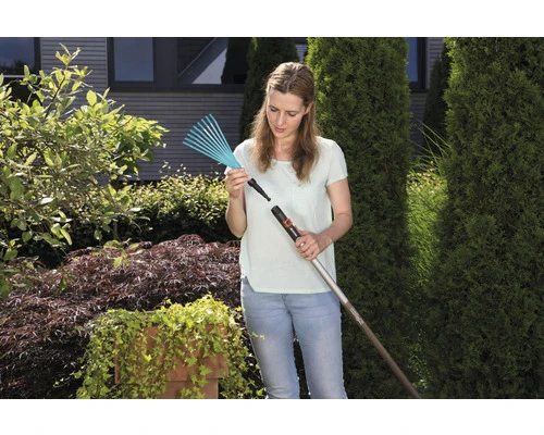Het GARDENA combisystem bladharkje is ideaal om bladeren, onkruid en gemaaid gras op te ruimen. De ergonomisch gevormde handgreep met zachte componenten ligt prettig in de hand. Koppel een combisystem steel om comfortabel langdurig op de grond te werken. Het bladharkje heeft een breedte van 12 cm en is vervaardigd uit hoogwaardig staal met een Duroplast coating. Gardena geeft een garantie van 25 jaar op dit product.