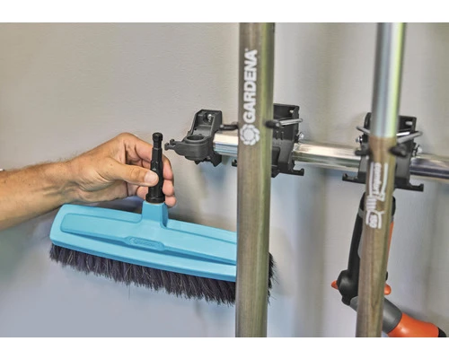 Met de Gereedschaphouder Plus van GARDENA bespaar je ruimte bij het opbergen van je tuingereedschap. De houder is ideaal voor het opbergen van zwaarder tuingereedschap, zoals spades en vorken, maar ook voor de producten uit het GARDENA combisystem en andere grotere gereedschappen. De houder is van aluminium gemaakt en imponeert met zijn belastbaar gewicht van 60 kg. Op de drie houders kun je gereedschappen met een gewicht tot 10 kg per stuk opbergen. De houders zijn flexibel en kunnen ook worden gebruikt om accessoires uit het combisystem en het Original GARDENA System op te bergen. De universele haak kan worden gebruikt voor het opbergen van grotere gereedschappen, zoals heggenscharen of bladblazers met hun brede handgreep. Deze haak kan maximaal 5 kg dragen. Dankzij de vergrendelbare muurbevestiging kun je de aluminium stang uittrekken zodat er nog meer gereedschap aan de houder kan worden opgehangen. De Gereedschaphouder Plus krijgt van GARDENA 25 jaar garantie na registratie binnen 3 maanden na aankoop op GARDENA.com/registration.