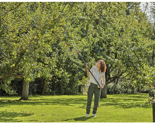 De GARDENA combisystem Takkenhaak is het ideale hulpmiddel om fruit uit de boom te schudden. Dankzij de makkelijk verwisselbare accessoires is het GARDENA combisystem flexibel te gebruiken. De Takkenhaak kan met alle stelen van het GARDENA combisystem worden gecombineerd en wordt bevestigd door hem op de steel te schuiven en vast te schroeven. In combinatie met de Telescoopsteel (art.nr. 3721-20), kun je makkelijk hogere takken of hoog hangend fruit, zoals appels, bereiken. De betrouwbare aansluiting tussen Takkenhaak en steel zorgt ervoor dat je altijd comfortabel kunt werken. Dankzij de S-vorm van de haak kun je hem gebruiken om takken te ondersteunen, of te schudden. De haak is ideaal om gevallen fruit te oogsten. Ook kan de Takkenhaak worden gebruikt om afgezaagde of afgeknipte takken uit bomen te verwijderen, of in de winter sneeuw uit de bomen te verwijderen. Om ruimte bij het opbergen te besparen, kun je de combisystem Gereedschaphouder Flex (art.nr. 3505-20) gebruiken. GARDENA geeft 25 jaar garantie op de combisystem Takkenhaak na registratie binnen 3 maanden na aankoop op GARDENA.com/registration. Let your tool family grow. GARDENA combisystem. Verwisselbaar. Duurzaam. Voor al je tuinwerk.