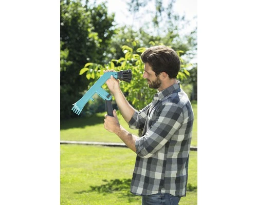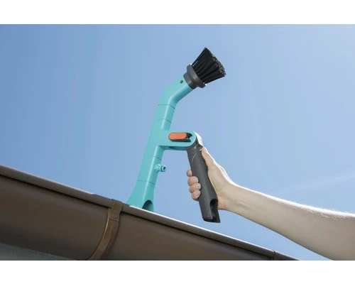 De GARDENA combisystem Gootreiniger is ideaal voor het gemakkelijk leegmaken en reinigen van dakgoten. Stevige borstels aan de ene kant en twee hoogwaardige, kunststof schrapers aan de andere kant zorgen voor efficiënte reiniging. De draaggreep maakt het mogelijk om de gootreiniger zelfs zonder steel te gebruiken. Het is ook mogelijk om water te gebruiken tijdens het reinigen. Een tuinslang kan eenvoudig worden aangesloten dankzij de Original GARDENA System aansluiting. De werkhoek is eenvoudig instelbaar met een quick-lock hendel. De gootreiniger past op alle GARDENA combisystem stelen, waarbij GARDENA een telescopische steel adviseert om tot ca. 5 meter hoog te kunnen werken. 25 jaar garantie.