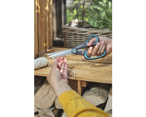 De MultiCut van GARDENA is de multifunctionele schaar voor huis, tuin en hobby. Gebruik de MultiCut flexibel voor verschillende taken. Of je nu knipt door karton of papier tijdens het knutselen, een touw doorknipt of verpakkingsmateriaal opent: dankzij de duurzame, scherpe messen van roestvrij staal is iedere snede nauwkeurig en netjes. Met de MultiCut heb je een duurzame schaar in je handen, want de handgrepen zijn gemaakt van meer dan 70% gerecyclede kunststof. Bij het knippen zorgen de ergonomische ErgoTec-handgrepen deze huisschaar comfortabel en fijn om vast te houden, of je nou links- of rechtshandig bent. De geïntegreerde zachte grip zorgt voor slipvast gebruik. De schaar is voedselveilig en laat geen smaak of geur achter. Hij is ook gemakkelijk schoon te maken aangezien hij vaatwasmachinebestendig is. De MultiCut is een kwaliteitsproduct dat is ontwikkeld in Duitsland en GARDENA geeft er 25 jaar fabrieksgarantie op na registratie op gardena.com/registration binnen 3 maanden na aankoop. Ga voorzichtig om met het product. GARDENA Micro-Cutting. Geef je oogst de respect die het verdient, met ons assortiment precisiegereedschappen.