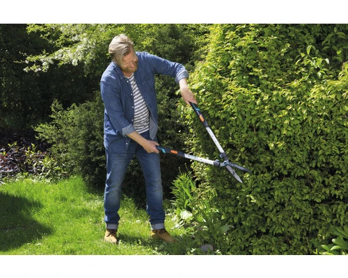 Bij het snoeien van een heg is een groter bereik vaak zeer wenselijk. Daarom is het erg handig dat de TeleCut van GARDENA telescopische armen heeft die uitschuifbaar zijn, zodat je niet de ladder op hoeft. De langere hefboomwerking geeft bovendien meer snoeikracht. De aluminium armen zijn niet alleen licht, maar ook ergonomisch dankzij Ergo-Tec.